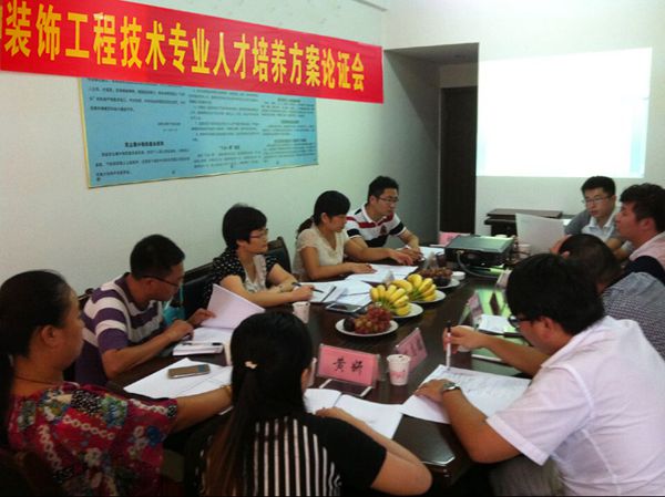 此次论证会由建筑工程系陈月萍副主任主持,会上,陈月萍副主任介绍了近几年系部教学改革发展情况,建筑装饰教研室主任介绍了建筑装饰工程技术专业发展情况、特色亮点、2014级人才培养方案总体制定前期调研以及专业人才培养方案征求意见稿。各位行业专家分别对人才培养方案的岗位需求和职业能力培养,怎样让装饰方面人才培养达到企业所需,怎样让学校与企业、学生与岗位达到真正的对接、如何提高装饰专业人才培养质量等问题进行了深入的讨论。随后,建筑装饰专业教师和专家一起讨论人才培养的方式、课程体系、教学环节时间分配、实践教学安排、教学进程、订单培养项目等问题。