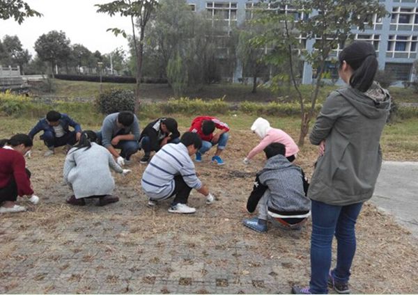 所有参加活动的受资助学生分成三个小组,在辅导员老师的组织下来到实训楼门前清理杂草和垃圾。同学们有的钻到草丛中用手将绿地中的琐碎纸屑、废弃塑料袋、烟头等丢弃物收集到自带的垃圾袋中,有的则运用扫把等工具清扫道路垃圾、清除乱张贴物等。小义工们的身影遍布整个学校广场,他们通过自己的点点爱心和微薄之力来提升大家的环保意识,将“生命有限,环保无限”的理念融入到学习和生活中去。