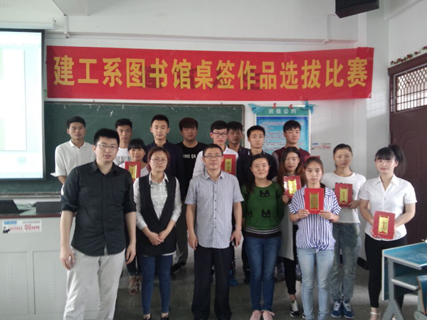 2015518,由建工系团支部主办,我系专业性社团新尚建筑营造学社承办的“书香校园图书馆桌签创意设计”选拔比赛在1401教室拉开序幕。