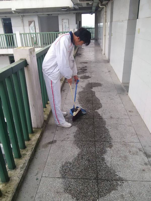 参加活动的学员分成若干小组,由各寝室长担任组长,每组负责一块卫生区。大家自带扫把、抹布、以及垃圾袋,不畏脏、不怕累,积极地参加到活动中。考虑到天热,公寓内蚊虫较多,系里还专门购买了杀虫气雾剂,对卫生死角进行杀灭。同学们分工明确,配合默契,有的扫地,有的抹墙,有的喷洒杀虫剂,大家都热火朝天地干着。