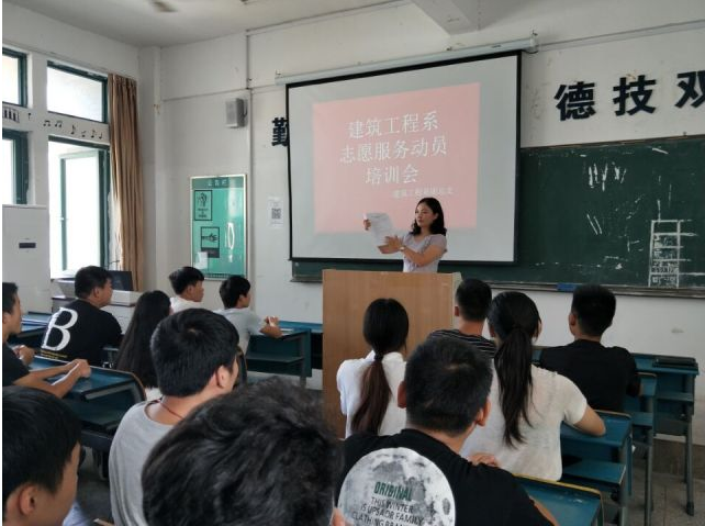 为了更好地推进安庆市创建全国文明城市工作,积极响应市委、市政府号召,遵照学院统一部署,9月12日下午,建筑工程系召开志愿服务动员培训会。会议由系团总支书记主持,全系90名青年志愿者参加。