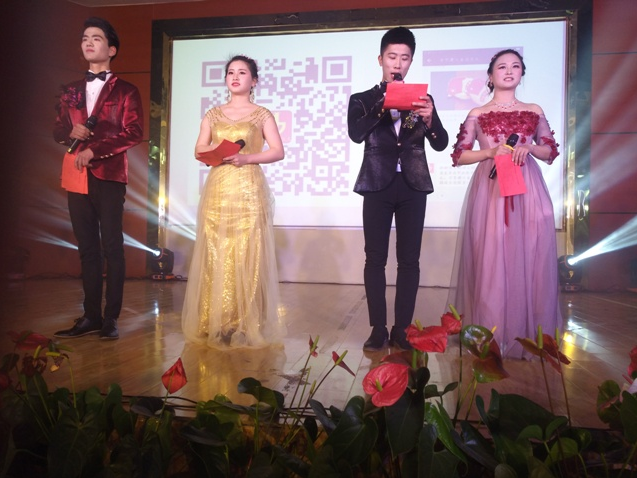 歌曲串烧、乐队弹唱《海阔天空》、小品《708090》、手语舞蹈等轮番上场,或浪漫温馨,或活泼动感,风格各异,变幻多姿;扇子舞《茉莉花》的惊艳登场,跳出了青春的舞步,跳出了生命的色彩,跳出了专属于她们的靓丽风姿;由退役大学生自编自导自演的配乐诗朗诵《我要去当兵》,则将当代大学生爱国情怀和强军梦想演绎得淋漓尽致,博得现场掌声雷动,欢呼声喝彩声此起彼伏;三句半《敲锣打鼓闹新年》新颖别致独,独具一格,让人感受到了不一样的新年祝福;魔术表演千变万化、令人目不暇接,让观众心旷神怡,沉醉其中。在特邀嘉宾节目环节,系党总支书记徐北平与两位企业经理的男女小合唱《敖包相会》,更是将晚会推向了高潮,掌声与欢呼声不绝于耳,台上台下瞬间成了一片欢乐的海洋。