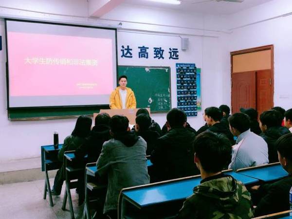 此次活动重点围绕“四个一”集中开展防传销和非法集资进校园宣传教育 。一、系团总支组织成立“反传销防非法集资”宣传志愿者队伍,深入教室、宿舍、学生活动场所开展签名、咨询等活动,大力宣传传销和非法集资对同学们造成严重危害性。二、辅导员以主题班会的形式宣传反传销防非法集资的法律法规,让学生了解国家相应方针政策,增强防范意识。三、通过新媒体“三微”平台提供图片、视频、文字等宣传资料供学生观看和下载,营造全员参与的良好氛围。四、系部集中组织学生观看打击传销微电影《传销笔记》《经侦特别节目之非法集资》等视频,帮助广大学生认清传销和非法集资的欺诈性和严重危害,引导学生树立正确的价值观和择业观。