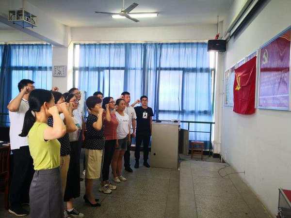 继后全体党员党员们开展了“追忆初心、牢记宗旨”重温入党誓词活动,伴随着《不忘初心、牢记使命》歌曲总支负责人给党员同志们赠送了“政治生日”贺卡,表达了对党员政治生日的祝福。