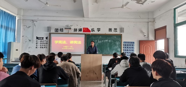 各班级团支部积极召开了主题班会。辅导员班主任组织同学们登录了普法网学习宪法相关知识,还利用主题班会引导学生坚定宪法自信、努力做宪法的忠实崇尚者、自觉遵守者、坚定捍卫者。在“宪法晨读”活动中,同学们共同诵读宪法章节、学习宪法知识,通过仪式感教育让建工学子们沐浴宪法光辉,领略宪法魅力,体悟宪法精神。