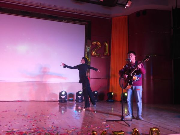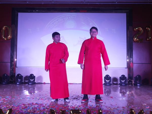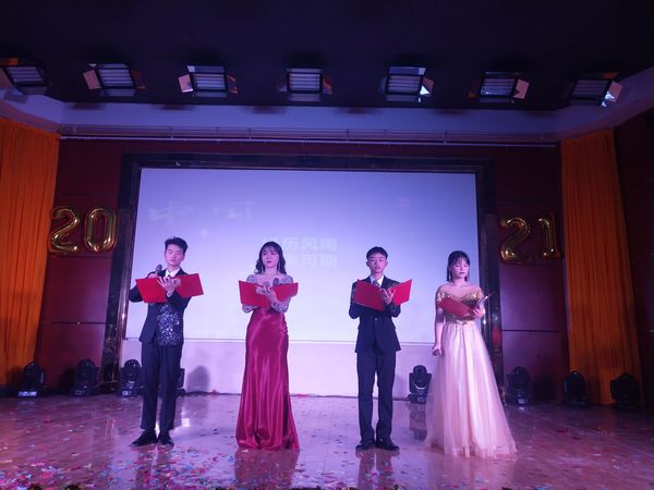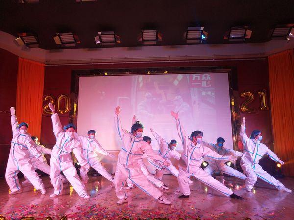 师生们欢聚在普天同庆的夜晚,大家用歌声诠释青春的气息,用舞蹈展开梦想的翅膀。舞蹈《梦幻拉丁》用炽烈的激情勾勒了逐梦岁月的精彩画卷。歌舞《青春篮球》表达了同学们对运动的喜爱,比赛让运动健儿们一步步成长,每一步都是那样的铿锵有力,掷地有声,篮球场上凝集了太多的激情和风采。相声《新校园时代》描述了校园生活里最绚丽的霞光,放射了集体生活中最靓丽的追梦情怀,观众们在校生中体悟了人际交往的趣。舞蹈《小城谣》描绘了眉目如画的江南少女在日光下挥舞手绢的优雅时刻,让人陶醉其中。李劼睿小朋友倾情加盟,表演了脱口秀《淘气的猴子》,他在欢呼声中迈开了自信的脚步,声情并茂地讲述了他和小猴子之间的有趣故事。吉他弹唱《像风一样》由“拉丁王子”和“弹唱王子”友情合作,唱出了青春的信念,舞动出了内心的期待。舞蹈《礼赞白衣战士》赞美了疫情面前“最美逆行者”逆风而上的精神,他们手挽手、肩并肩,冲锋陷阵。医护人员们传递了守望相助的力量与温情。杨庆丰老师带来的现代舞《激情梦谣》燃爆了全场,将晚会推向了高潮。2020年是不平凡的一年,更是收获的一年,在晚会颁奖环节中,院领导班子为本学年荣获学校奖励的同学颁发了荣誉证书,鼓舞他们继续加油。“运气球”游戏互动环节中,四位老师受邀参加,欢乐无限。小品《士兵突击》由退役大学生士兵根据部队生活改编,表达了他们即使面对风雨的肆虐,也能在艰难中前行的坚定信念。《军歌合唱》节目中喊出了报效祖国的铮铮誓言。歌曲《破茧》由方锦轩等三位小朋友演唱,童音清脆,悦耳动听,唱出了对美好生活的赞美。同学们在走秀表演《花样年华》中描绘了悸动的青春画卷。朗诵《经历风雨,未来可期》提到,只有经历过地狱般的磨练,才能创造出无穷无尽的力量。2020实“鼠”不易,希望新的一年能“牛”转乾坤。歌舞《你曾是少年》唱出了感人的师生情,教诲如春风,师恩似海深。