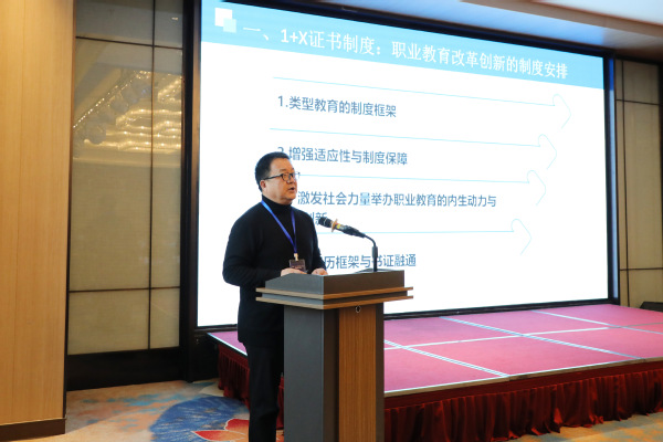 BIM证书联盟秘书处向大会做了联盟前期工作暨2021年度工作计划报告,WilliamHill官网建筑工程学院曹青、张赛两位老师,分别就我院BIM书证融通工作和国家级职教创新团队课题研究情况向会议做了汇报,得到与会兄弟院校的一致好评。