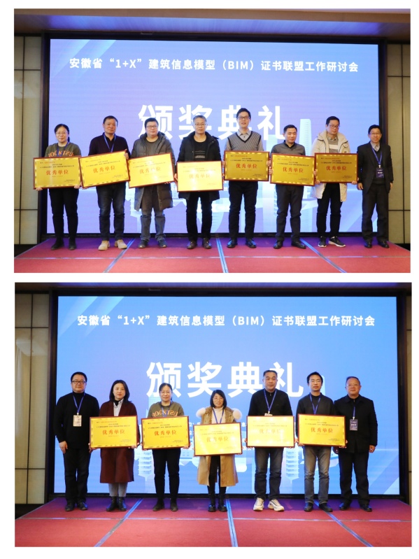 会议还表彰了BIM证书试点优秀学校,并颁发了奖牌。我院分获2019年度、2020年度安徽省BIM证书试点优秀学校。(图、文:宣晴)