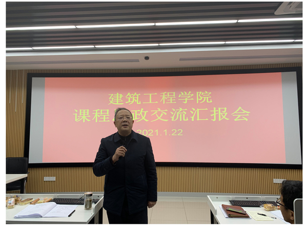 1月22日上午,建筑工程学院在1号教学楼1+X证书考培室召开课程思政教学交流汇报会。校长毕明生,副校长谭维奇,党委委员、宣传部长潘发生出席。教务处长吴何珍到会指导,建工学院院长陈月萍主持会议,建工学院全体教师参加会议。