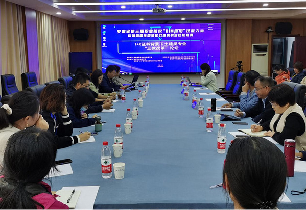 10月16日至17日,建筑工程学院举办了1+X证书背景下土建类“三教改革”论坛系列活动,活动分专题讲座和参观交流两个环节,邀请了浙江建设职业技术学院夏玲涛教授、杭州品茗安控信息技术股份有限公司教育事业部总工程师盛黎作专题报告,并与合肥职业技术学院“范家茂技术技能型大师工作室”团队成员进行研讨交流。论坛以安徽省第三届职业院校“BIM应用”技能大赛暨第四届全国装配式建筑职业技能竞赛为契机,组织来自省内31所职业院校的40余位土建类专业教师参加。