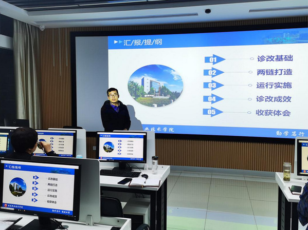 院长陈月萍对专业、课程层面的汇报内容进行了指导,强调突出各层面诊改工作的针对性、科学性、可行性,要过程化的反映专业、课程建设的特色,并要求各专业团队牢固树立质量意识,落实学校诊改工作方案,不断促进8字诊改螺旋的循环运转。(文:杨小白 图:张建飞、张赛 审核:陈月萍)