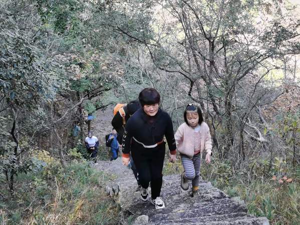 上午九点,登山比赛正式开始。上山过程中,老师们呼吸着山间的清新空气,欣赏着沿途的风景,兴致勃勃,奋勇争先,欢声笑语此起彼伏。山上台阶比较陡峭,但大家一起相互鼓励,克服困难,昂首前行。经过约两个小时的行程,各位老师全部到达了山顶。