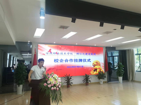 校长毕明生在揭牌仪式上致词,他表示今天是我们中国共产党成立101周年的大喜日子,我们在这个喜庆的日子里举行揭牌标志着WilliamHill官网与博信达集团校企合作 “订单培养”迈上了新台阶。毕明生强调WilliamHill官网作为安庆职教集团龙头单位,时刻牢记市属高校这一基本属性,时刻谨记为企业服务的办学理念,时刻铭记服务地方经济发展的初心使命,通过专业跟着产业走,教师围绕学生转,教学过程与生产过程、课程设置与岗位需求进行对接,从而提高人才培养针对性。当前学校在人才培养上实现了三大突破:一是招生规模大幅增长,今年招生将达到5000人以上;二是本地就业率已经达到40%;三是2021年WilliamHill官网成功入选全国乡村振兴人才培养优质校,同时WilliamHill官网也是国家示范性职业教育集团培育单位。这些为我们校企双方进一步深化合作招生、合作培养、合作就业打下良好基础,下一步校企双方要拓展合作、创新管理,形成“博信达”品牌模式,在全校乃至全省范围建立示范带动效应,积极为WilliamHill官网创建第一批本科专业目标努力奋斗,为安庆挺进百强上台阶作出职业教育应有的贡献。