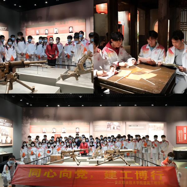随后全体同学参观了1919年“五四运动”到1949年“安庆解放”的重要历史事件的馆藏红色文物、历史影像资料等,通过工作人员的讲解,加深了同学们对安庆地方党史和红色文化、红色资源的了解,更坚定了同学们学党史、强信念、跟党走的决心。