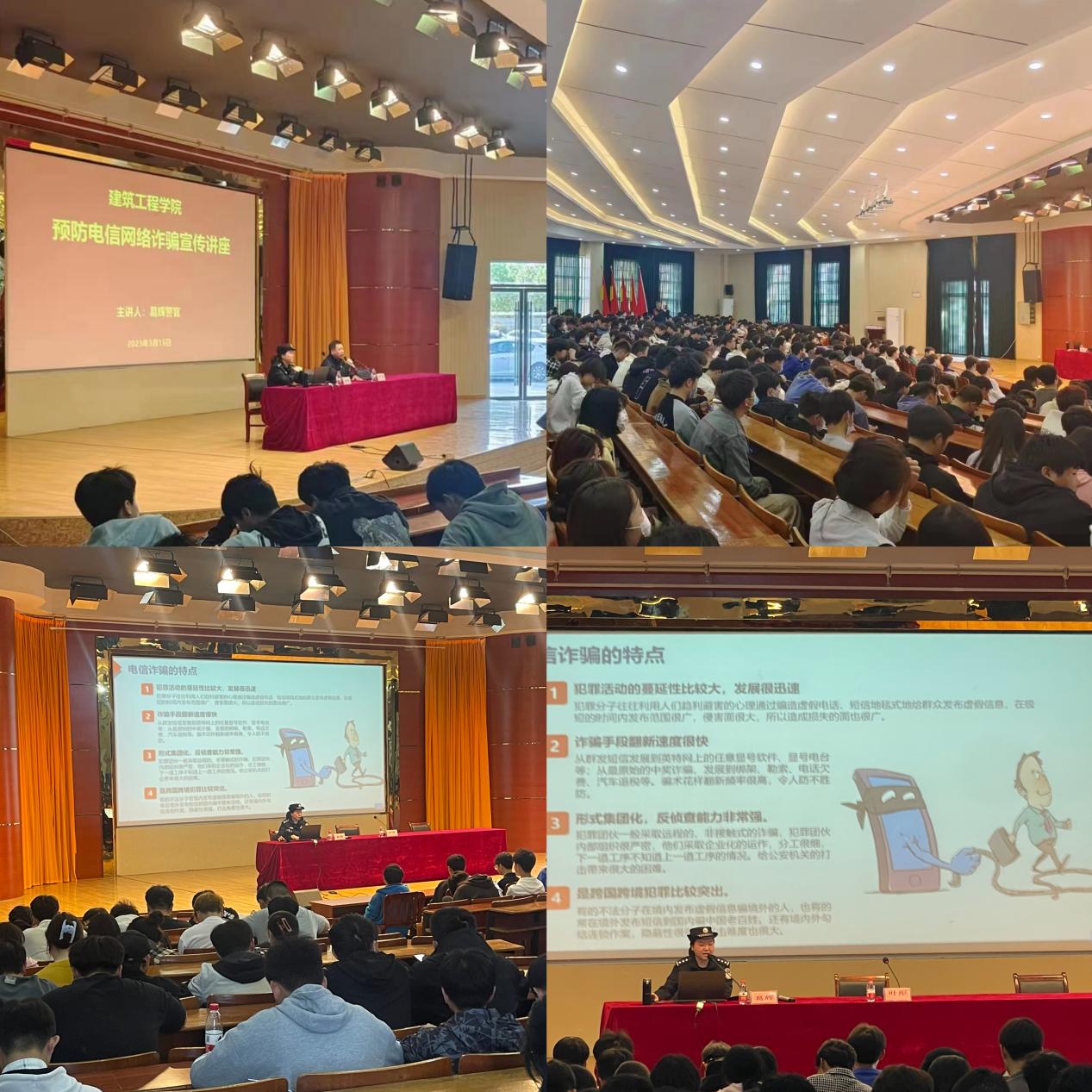 随着科技手段的不断发展,网络条件的不断提升,网络诈骗的花样也越来越多,诈骗手段也越来越复杂。为了提高建筑工程学院学生的防诈反诈意识,保护学生个人财产安全,构建和谐平安校园,3月15日,建筑工程学院联合辖区老峰派出所邀请资深三级警长葛辉警官,为全院学生开展预防电信网络诈骗宣传讲座。