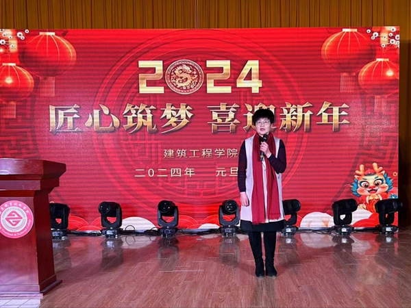 陈月萍代表建筑工程学院致2024年新年贺辞,向辛勤工作、努力拼搏、勤奋学习的广大师生致以新年的问候与美好的祝福。她在致辞中回顾了2023年建筑工程学院在全国职业院校技能大赛、全国黄大年式教师团队评选等工作中所取得的可喜成绩和突破,并对即将到来的2024年寄予深厚的期望,激励全体师生在新的一年,团结一致,奋发进取,共同推动建筑工程学院教育事业再上新台阶!
