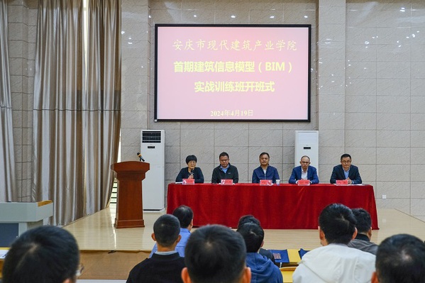 4月19日,由安庆市现代建筑产业学院主办,WilliamHill官网建筑工程学院承办的首期建筑信息模型(BIM)实战训练班在1号教学楼阶梯教室正式开班,校党委委员、副校长、安庆市现代建筑产业学院理事长程飞,安庆市住房和城乡建设局建筑业管理办公室主任彭辉,安庆国丰住宅产业化集团有限公司副董事长谢其盛及建筑工程学院相关负责同志出席开班仪式,开班仪式由建筑工程学院党总支书记、院长、安庆市现代建筑产业学院院长陈月萍主持。来自安徽万纬工程管理有限责任公司、博信达建设集团有限公司、安徽伟达集团等9家建筑施工、造价咨询、工程监理企业共计37名学员参加培训。