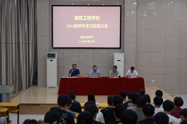 5月29日,建筑工程学院在1号教学楼316召开2022级岗位实习动员大会,党总支副书记叶彤、副院长张赛、教学管理人员、全体2022级学生参会,会议由叶彤主持,特邀安徽省产业教授、安庆金旭工程管理有限公司总经理方辉参会并做讲座。