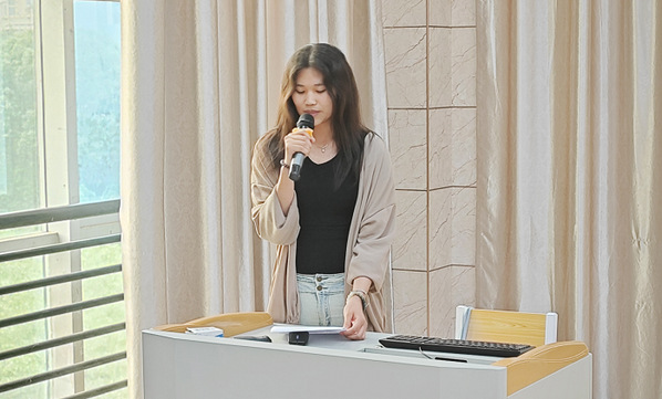 23级学生干部代表申蒙萌发表感言,她首先表达对老师们以及学长学姐的感激之情,也表达了对即将奔赴实习岗位的学长学姐的祝福。同时,她表示将接过学长学姐接力棒,发扬建工团学的优良传统,组织开展好团学活动,不辜负老师及学长学姐们的期望。