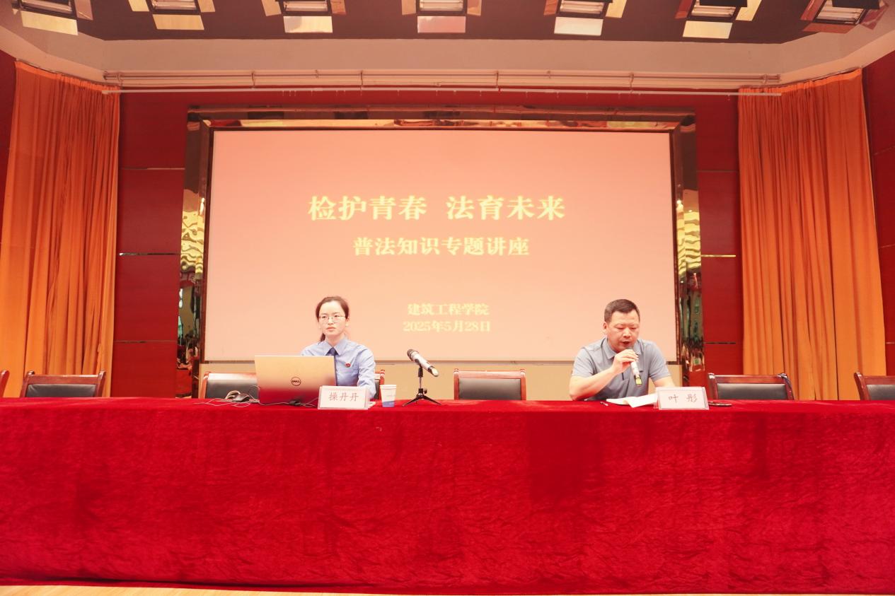 为进一步加强校园法治建设,增强学院学生法治意识,明确法律底线,提升安全防范和反诈能力,营造平安和谐校园环境。202 5年5月28日下午,我院在图文一楼报告厅开展“检护青春 法育未来”普法知识讲座。本次讲座特邀安庆市迎江区人民检察院操丹丹检察官为主讲嘉宾。院党总支副书记叶彤主持会议,学生管理相关同志、辅导员及500余名学生共同聆听讲座。