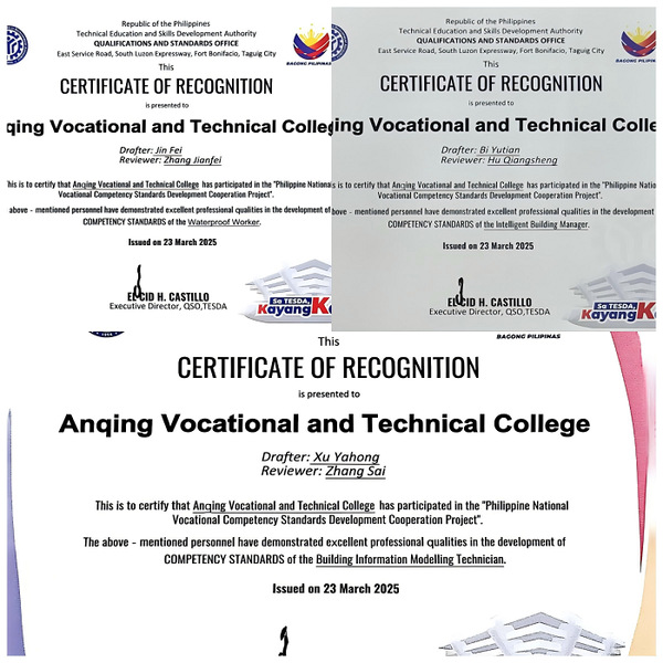 此次三项技能标准的顺利获批,将助力菲律宾建筑领域专业技能水平提升,为技能人员的职业发展提供有力支撑,是建筑工程学院持续推进职业教育国际合作的重要成果之一。下一步,建筑工程学院将秉承“开放、创新”的合作理念,通过各级各类平台,主动对接国际组织和院校,继续推动师资互访、学生交流和技术援外等国际交流活动,按照双高建设计划扎实开展国际交流合作。(文/图:毕雨田  审稿:张赛、陈月萍)