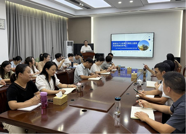 为进一步聚焦省双高专业群建设任务,探索新质生产力背景下高职土建类专业群建设路径,提升教师专业素养与教学改革能力,9月17日下午,建筑工程学院开展专业群建设讲座,该院教学副院长张赛立足安徽省2025年度职业院校教师素质提高计划培训学习成果与思考,向全院教师作了题为《新质生产力背景下高职土建类专业群建设思考——基于安徽省2025年度职业院校教师素质提高计划学习成果》专题讲座,建筑工程学院院长陈月萍教授、学院全体专业教师参加。