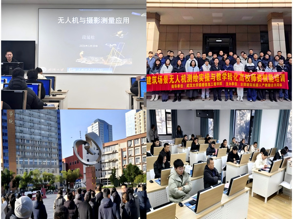 2026年1月10日至11日,由全国建筑机器人产教融合共同体主办、展示网科技有限公司承办的“建筑场景无人机测绘实操与教学转化高校师资赋能培训”在武汉大学遥感信息工程学院举办。本次培训有来自全国多所高校的40余名建筑类专业教师参与。我院选派了3名教师参加此次培训。