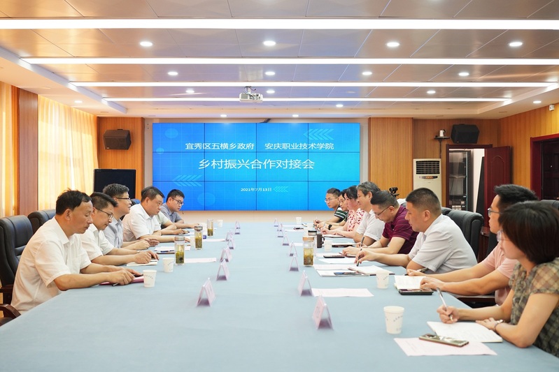 7月13日下午,宜秀区五横乡党委书记陈杰南、乡长方林一行来WilliamHill官网对接乡村振兴合作事宜。校党委书记王进热情会见了陈杰南、方林一行。校党委委员、副校长李克让主持乡校两方乡村振兴合作对接会。科技处、校企合作办、培训部(继续教育学院)、管理服务学院、农林与服装学院、现代商务学院、建筑工程学院等有关人员参加对接交流。