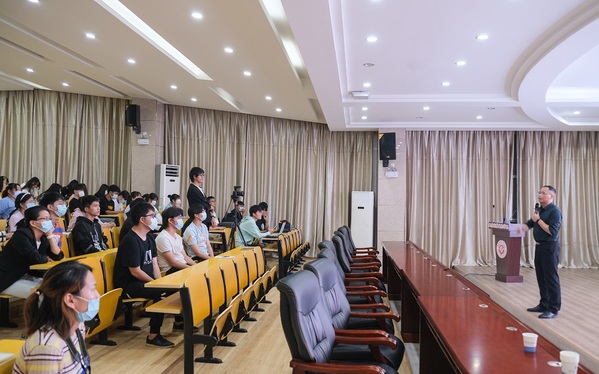 在题为“远离不良饮食  养成良好生活习惯”的讲座中,汪祝华从“营养”的三层含义展开,接着延伸至大学生健康行为调查、大学生健康状况调查、从肥胖超重说起、以健康为基,立生命之本四个方面。讲座内容丰富,气氛愉悦,以饮食健康、饮食习惯、饮食态度等多项详实数据为同学们科普了食品安全、BMI指数、膳食等概念。
