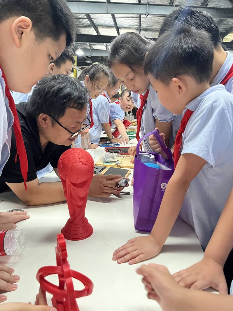 在参观过程中,机电工程学院的老师们向学生们详细讲解展柜中各种科技作品的制造方法和用途、实训区各种设备的功能和工作原理,让他们对高端数控技术和智能制造有了更深入的理解。学生们积极参与到互动环节中,通过亲手操作仪器,体验科技的乐趣。