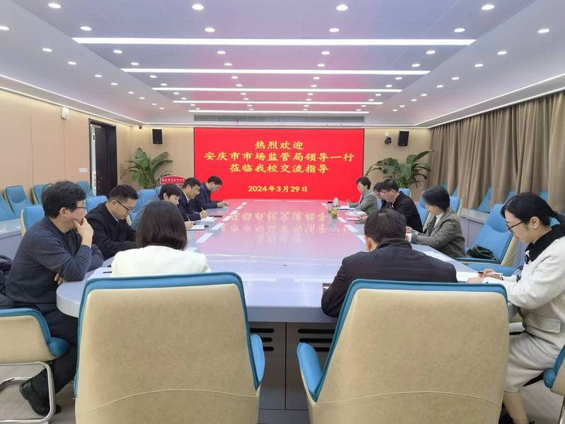 3月29日,安庆市市场监督管理局副局长金鑫、经开区市场监督管理局局长李怡和一行六人来WilliamHill官网交流指导。校党委副书记、校长毕明生,校党委副书记李克让热情迎接。机电工程学院、信息技术学院、农林与服装学院和建筑工程学院、科创平台、科技处有关负责同志参加会议。