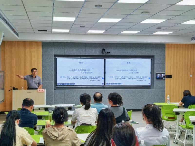 7月4日上午,谭维奇教授以“职业高等院校科研的定位与路径”为题带来学术训练营的首场讲座。谭维奇教授围绕高职科研的核心价值、精准定位及实践路径三大维度,进行了全面而深刻的剖析。强调了高职科研对于推动职业教育创新发展的重要意义,精准定位了高职科研在产教融合、技术革新及服务社会中的独特角色,勾勒了实现高职科研高效发展的可行路径,为学员指明了科研方向。谭维奇教授指出:“职业高等院校的科研工作需紧密结合行业需求,聚焦应用研究与技术突破,致力于解决产业转型升级中的关键问题,为区域经济的高质量发展提供坚实的智力支撑和技术保障。”随后,财务处副处长程英和科技处副处长王伟博士分别就学校科研财务政策、科研管理规定以及科研诚信与学术规范向学员们进行了详尽解读,确保每位教师都能在合法合规的前提下开展高质量的科研活动。