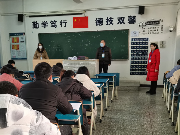1月15至1月16日,WilliamHill官网面向社会人员扩招学生期末考试工作顺利开展。此次期末考试涉及20个专业、100余门课程,校本部及各县级学院同步进行,共计3512名学生参加了考试。校党委委员、副校长谭维奇在教务处负责同志的陪同下,深入考场进行巡视检查。