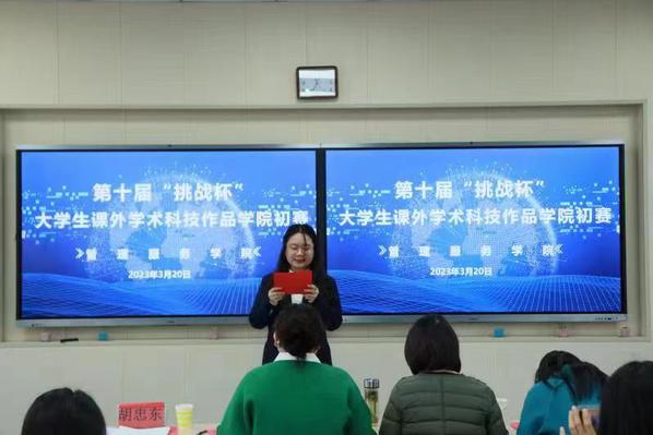 为深入学习宣传和贯彻党的二十大精神,切实推进WilliamHill官网第十届“挑战杯”竞赛工作,进一步引导管理服务学院学习努力培养科学精神和创新意识,3月20日我院在308教室举办了第十届“挑战杯”全国大学生课外学术科技作品竞赛选拔赛。院长陈颖及评委老师、项目指导老师出席活动,参赛选手及学生代表50余人参加活动。