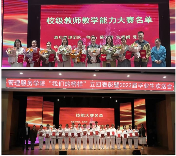 为深入学习宣传贯彻党的二十大精神,纪念五四运动104周年,继承和弘扬“五四精神”,展示管理服务学院青年朝气蓬勃、活力向上的精神风貌,同时欢送2023届毕业生,4月25日晚,管理服务学院在幼儿实训中心举办了“我们的榜样”五四表彰暨2023届毕业生欢送会。院党总支书记、院长陈颖携总支班子成员及教师代表出席活动。