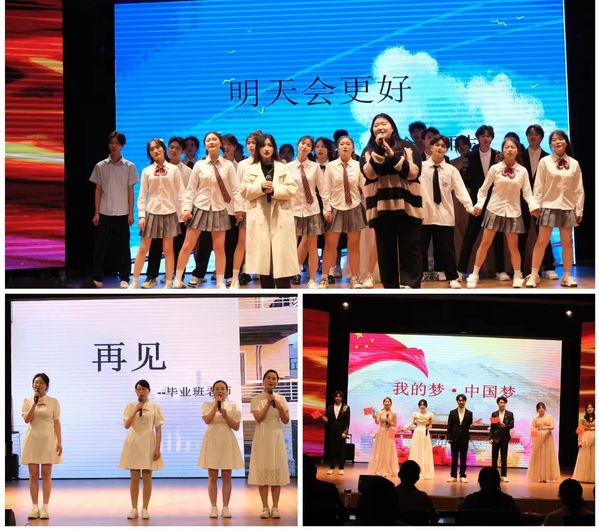 整场活动分为“青春向上”和“扬帆起航”两个篇章。开场舞《美丽中国》拉开了欢送会的序幕。在“青春向上”篇中,歌曲《我的梦中国梦》、《一起向未来》、《青春就这样》、舞蹈《九州同》等节目展现了青春力量、青春风采与激情。在“扬帆起航”篇中,歌曲《不说再见》、诗朗诵《你的样子》勾起了大家对往昔大学岁月的无尽回忆;歌曲《为你唱首歌》,情景剧《守护银龄之旅》融入校园生活元素,诙谐幽默,赢得台下观众阵阵掌声。毕业班辅导员代表演唱的歌曲《再见》将晚会气氛推向高潮,老师们将依依惜别的伤感与不舍化为对学子们的深深祝福,希望再见是为了更好地相遇和更好地成长。最后,活动在全体师生同唱《明天会更好》中落下帷幕。(文:练思雨 图:新媒体部 谢益凡 审核:丁凡)