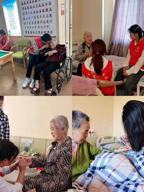 9月9日下午,来自智慧健康养老服务与管理等专业的志愿者们在党员教师的带领下来到了安庆怡人堂养老院。在院方的精心安排下,志愿者们将食堂煮好的银耳汤端到了老人们的房间门前,细心地帮他们洗干净碗勺,为每位老人盛上热乎乎的银耳汤。随后,党员教师和学生志愿者们帮爷爷奶奶们剪指甲、整理衣物并陪老人们唠家常。每一句热情洋溢的话语,都寄托着美好的愿望和期望。志愿者们无微不至的服务与话语,使老人们在节日中体会到深深的暖意。