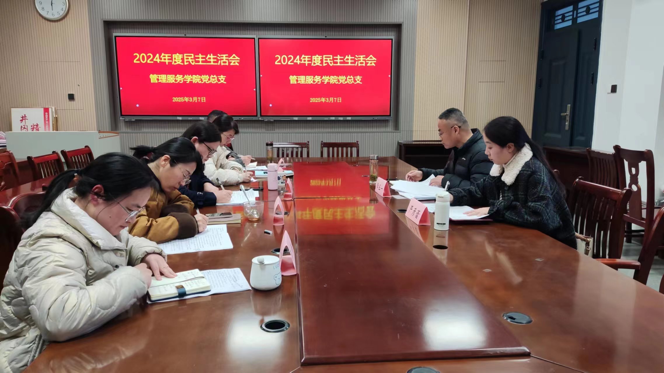 管理服务学院党总支为开好这次专题民主生活会,会前进行集中学习研讨,深入开展谈心谈话,全面梳理检视问题,认真撰写班子对照检查材料,班子成员精心准备个人发言提纲,为高质量开好民主生活会奠定坚实基础。