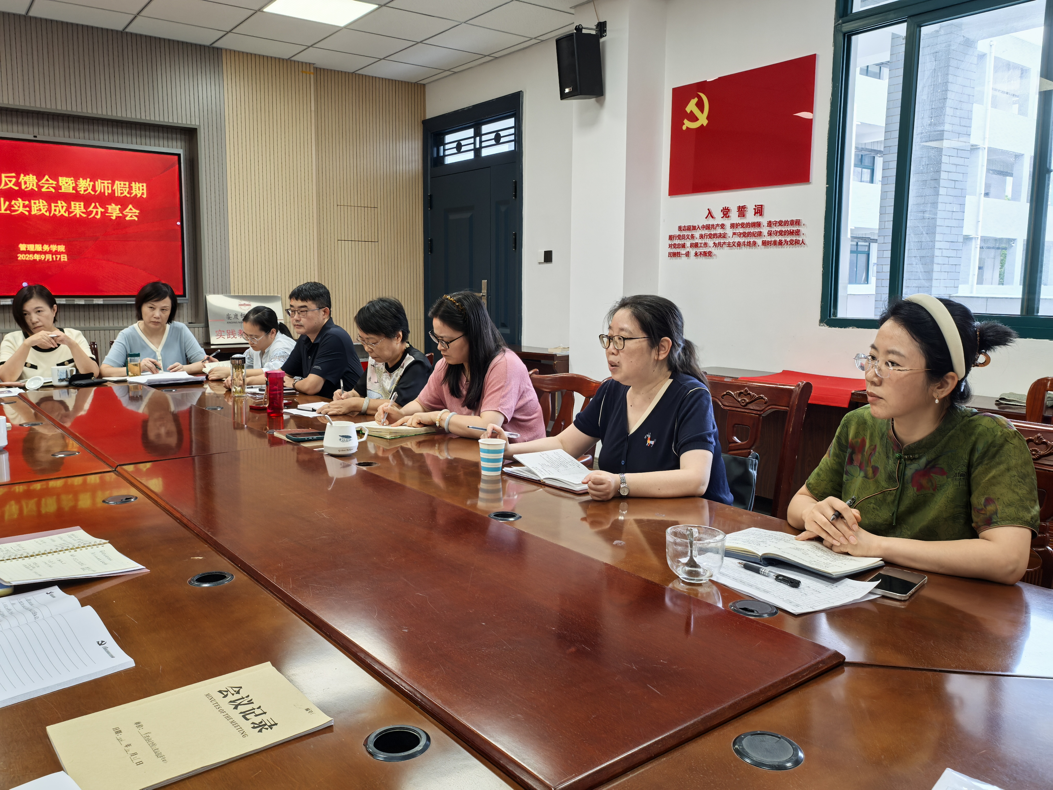 9月17日,管理服务学院召开2025-2026学年第一学期期初督导反馈会,并同步举行暑期国培、执裁、挂职等实践成果分享。校教学督导朱宜娟、郭媛媛、黄先军三位副教授应邀出席,学院全体教师参会。