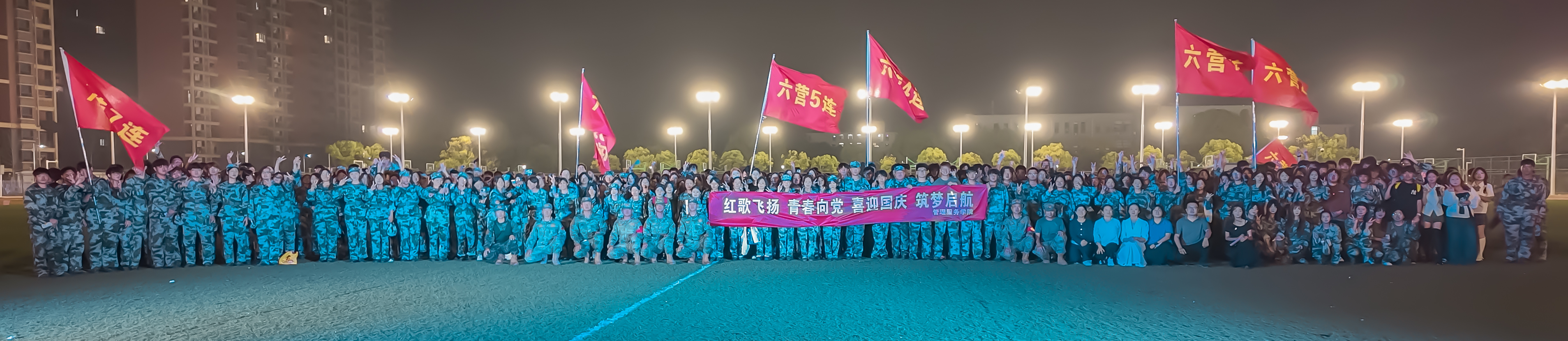 为庆祝中华人民共和国成立76周年,欢迎2025级新生正式开启大学生活,9月29日晚,管理服务学院在操场隆重举办“红歌飞扬 青春向党 喜迎国庆 筑梦启航”草地红歌会。院领导、教师代表、教官与全体新生齐聚一堂,以红色旋律传承爱国精神,以青春风采谱写时代华章。