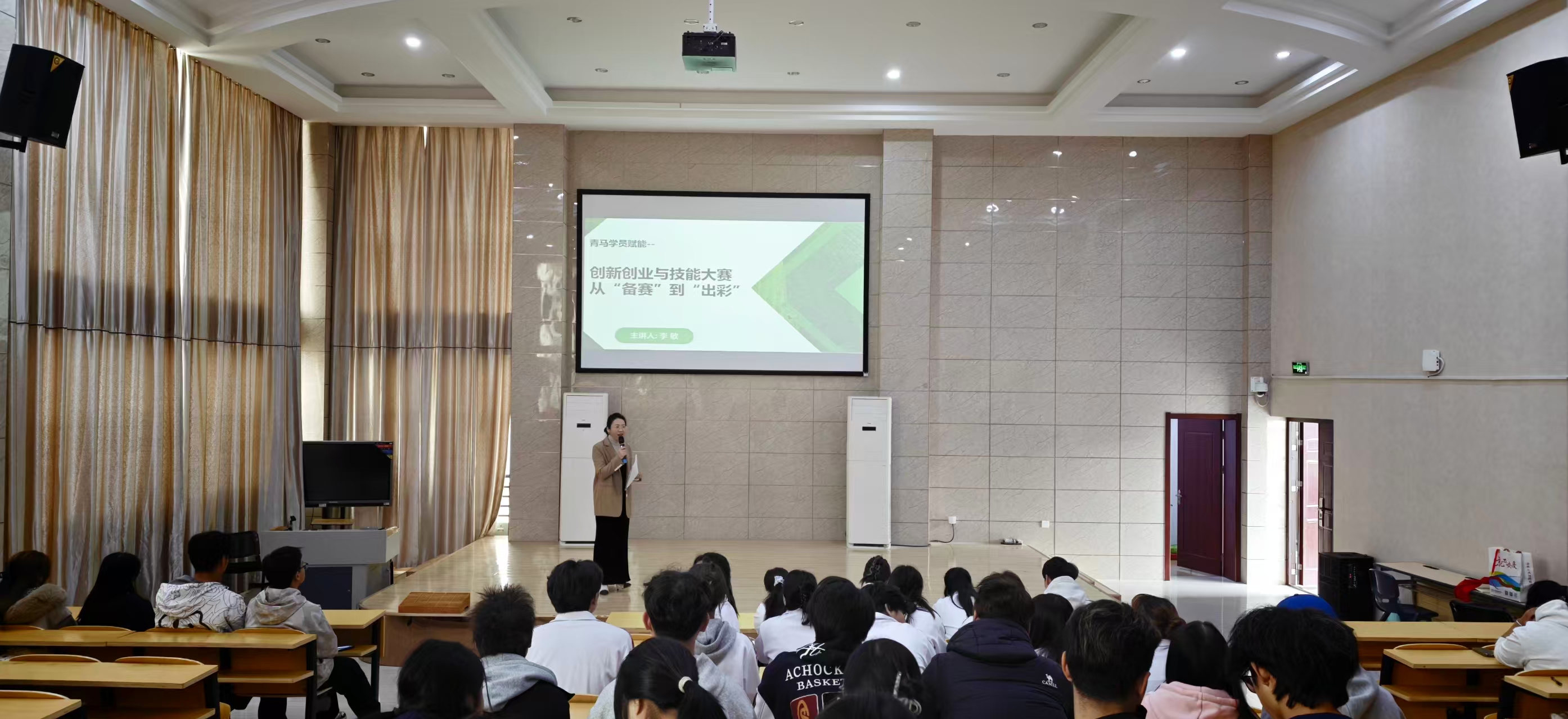 开班仪式后,李敏老师为学员作了《创新创业与技能大赛 从“备赛”到“出彩”》主题讲座。她系统解析了从选题策略、项目构建到路演呈现的全流程要点。她结合历年获奖案例,拆解“科技赋能”“社会价值”等热门赛道的破题思路,指导学员关注国家战略与专业痛点,注重数据支撑与逻辑表达,并避免常见误区。讲座案例详实、互动热烈,有效提升了学员对大赛的认知与备赛信心。