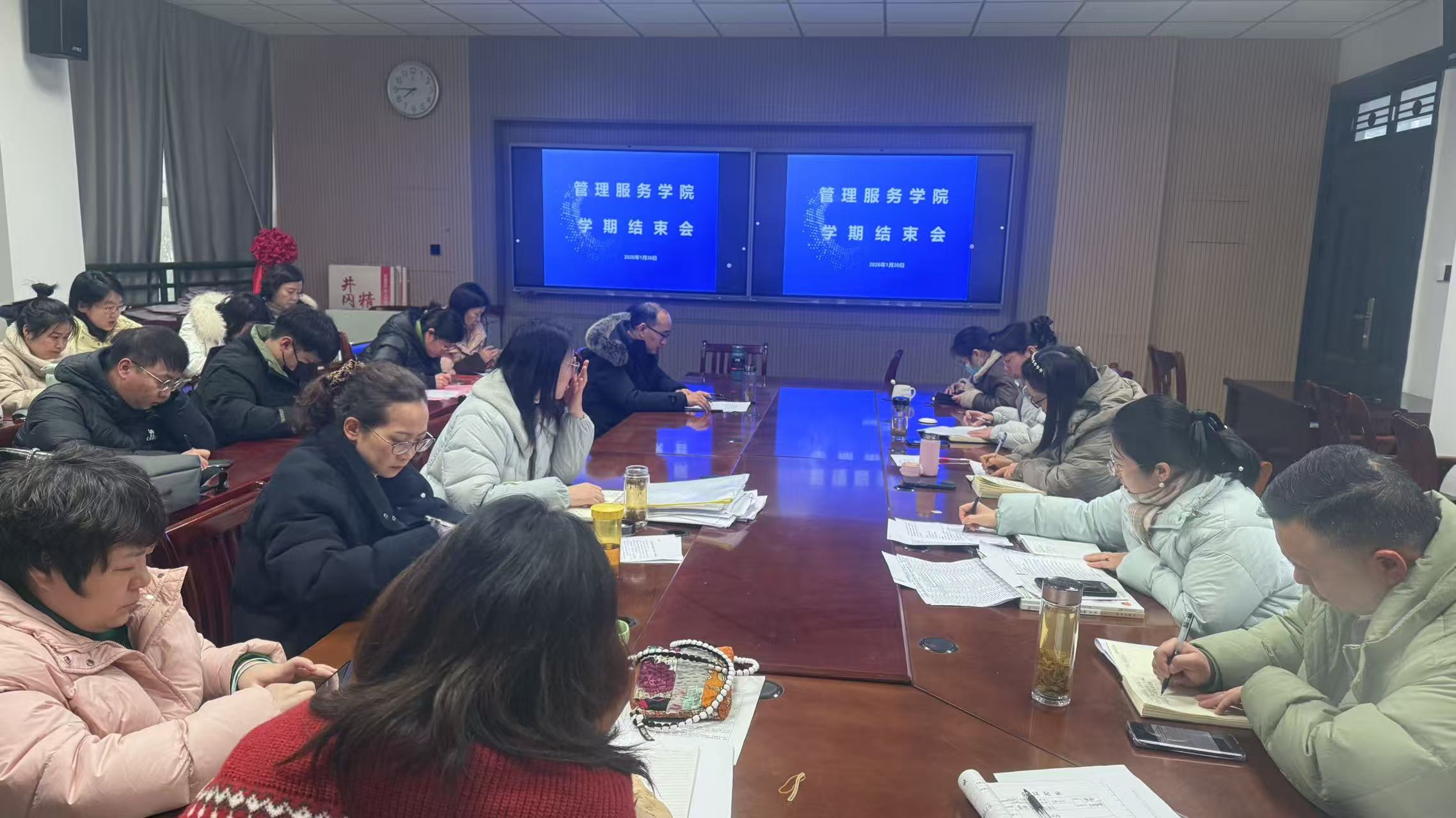 1月30日,管理服务学院召开学期结束工作会议,学院全体教职工参会,会议由党总支书记陈颖主持。