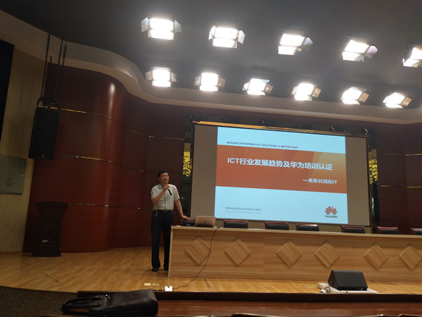 本次讲座由奥斯科国际IT讲师马坡先生主讲,他首先介绍了中国未来科技的发展方向和ICT职业生涯成功要素,同时也说明了华为培训认证对电子信息系在校学生未来的就业发展有很大的帮助。最后,又向我们介绍了符合ICT人才职业发展生命周期的人才培训战略,并表示希望与WilliamHill官网电子系合作,开设相关班级。