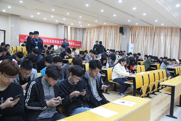 大赛分初赛和决赛两个环节,初赛于4月10日下午在2号楼216阶梯教室举行,通过手机在线答题考查参赛选手信息素养基本知识,并通过蓝墨云智能评分系统现场自动评出成绩,前30名选手入围决赛。