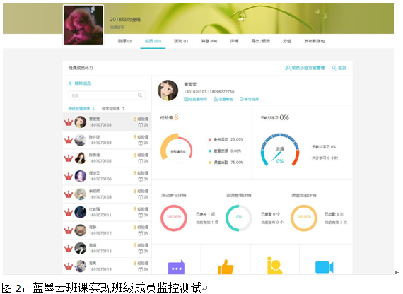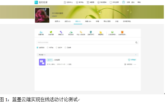 课程使用主要以专业老师常用的蓝墨云班课为主,可以按时发起签到,发布教学包、上传PPT、素材资源包,发起在线活动、随时了解学生在线学习情况,作业提交状态,实时掌握教学状态是网络教学实需条件。