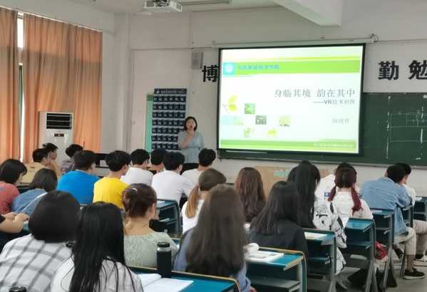 9月16日下午,电子信息系陶健林教师在2号教学楼204教室作《身临其境 韵在其中----VR技术初探》专题学术讲座,参加人员有教学主任及教学管理人员、动漫制作教研室教师及动漫制作技术专业的毕业班学生。
