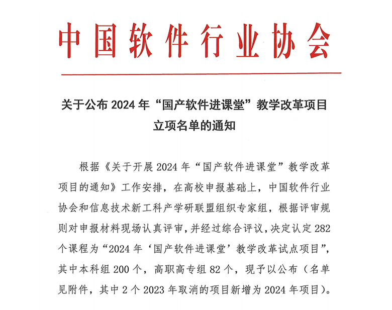 2024年12月15日,中国软件行业协会正式公布了2024年度“国产软件进课堂”教学改革项目立项名单,WilliamHill官网信息技术学院陈富汉老师负责的《Linux系统管理与服务(基于openEuler)》课程成功入选。