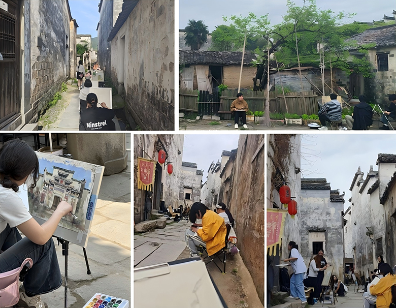 本次展览作品是信息技术学院2024级动漫专业学生在安徽省黄山市黟县屏山村写生创作的成果。4月中旬,学院组织学生赴皖南开展为期五天的春季写生实践教学活动。此次活动旨在通过实地采风,提升学生的艺术观察力、造型能力及创作灵感,将自然人文景观与动漫设计专业特色相结合。为深化教学效果,写生团队还组织了采风研讨、作品互评等活动,始终坚持“课堂+实践”的培养模式,引导学生从传统文化中汲取创作养分。