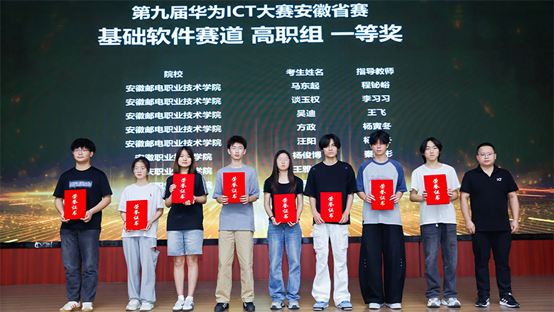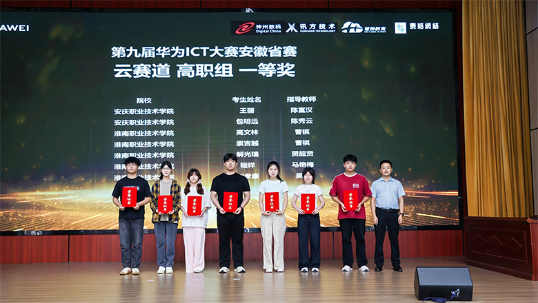 据悉,第九届华为ICT大赛吸引了全国1200余所高校、近14万名学生参与,安徽省86所高校、6000余名学生参赛,最终600余人次获奖,赛事规模再创新高。信息技术学院高度重视本届赛事组织工作,积极动员并选拔优秀学生参赛。在初赛阶段,各赛道共有129名学生踊跃报名参加,27人成功晋级,在安徽省赛中,我院学子表现优异,获得等级奖19项。其中王丽、包明远、王雅琴分别获云赛道和基础软件赛道一等奖,徐苏瑞等11人分获云赛道、基础软件赛道和网络赛道二等奖,王丛丛等5人获得三等奖。颁奖典礼上,我院荣获优秀组织院校奖,充分展现了学院在ICT人才培养方面的扎实基础与育人成效。今年年初我院顺利通过了华为ICT学院2024年度考核,继续获得2025年度华为ICT学院授权。