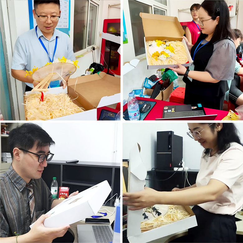 9月10日,学生代表带着亲手制作的花扇,走进教师办公室。当老师们接过缀满干花的团扇与精致包装盒时,脸上满是欣慰。“这份礼物特别有意义,能感受到学生的用心。”每一位收到礼物的老师笑着展示手中的花扇,“会把这份温暖融入接下来的教学工作中。”